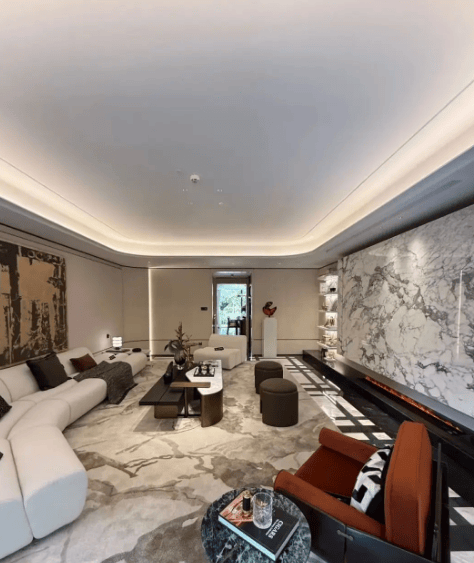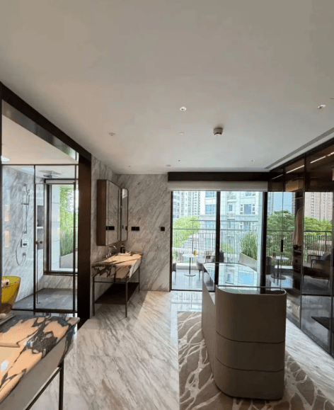 装修情况:法式轻奢风,装修标准 1.5 万 /㎡。室内由国际设计团队 ORAD 操刀,3.24 米层高搭配全景落地窗。