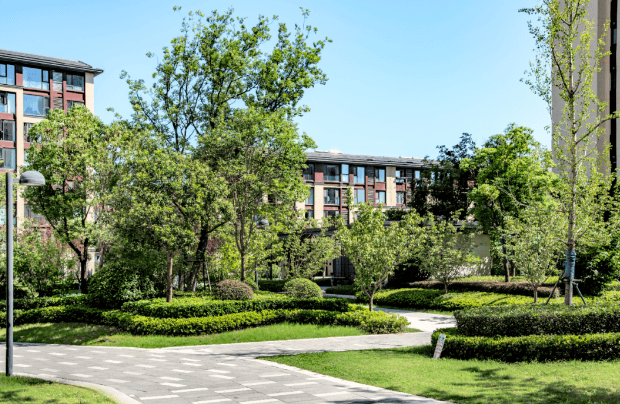 建筑规划:小区有高层和叠墅产品。其中,叠墅区共 5 栋 8 层建筑,2 层为一户,总共 90 户,楼栋外立面采用干挂石材 + 真石漆,且全人车分流。高层有 1#、2#、3# 等多栋,层数在 21-31 层不等。