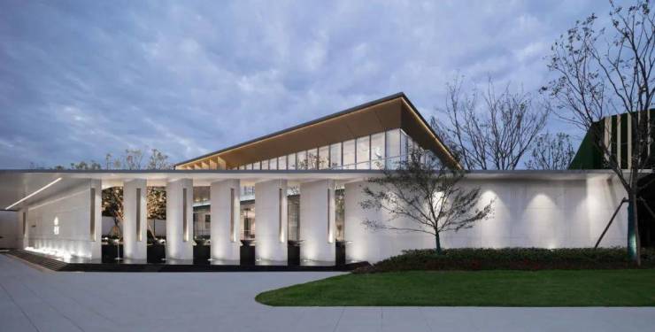 门廊顶部围合空间,营造步入内部空间前的完整仪式感,暗示空间的转换,从外部环境向建筑过渡。