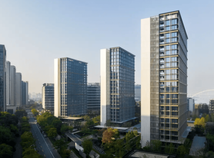 建筑设计:以 “现代简约、尊贵典雅” 为设计理念,建筑立面采用 “玻璃幕墙 + 铝板 + 干挂石材” 组合,浅灰色铝板搭配大面积玻璃,局部点缀金属线条,既显高端质感,又能提升室内采光与滨水视野。