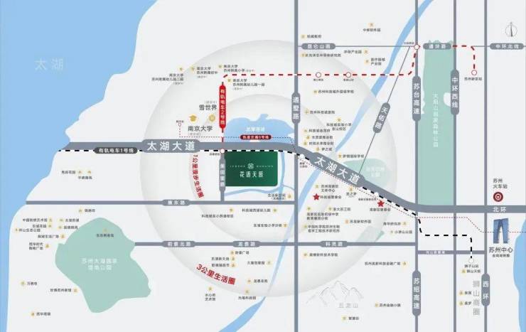 项目位于科技城的最西面,差不多是属于太湖科学城的位置,距离南京大学苏州校区不到1公里。