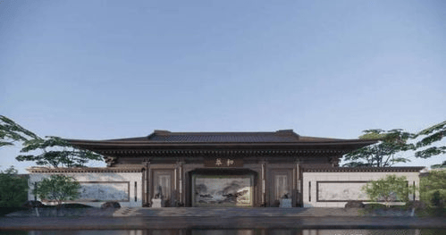 新中式风格:项目以王府中式住宅为设计理念,整个展示区的空间布局遵循儒家的传统思想——庄严与礼节,采用一轴三进的设计手法,中轴对称,序列严整,体现了中国人独有的阴阳平衡概念。