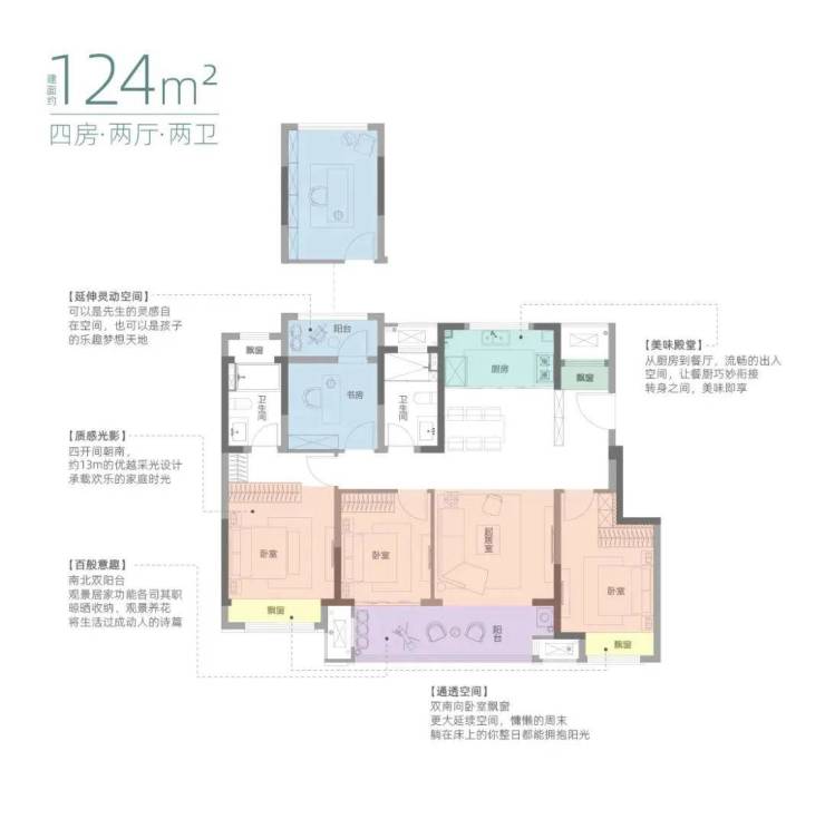 方正户型 | 南北通透 | 南北双阳台 | 主卧套房 | 奢阔横厅