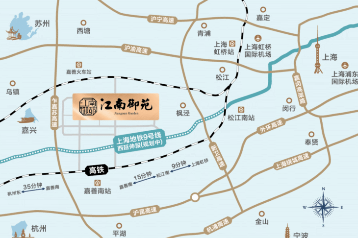 交通:项目周边的交通非常方便,本案距离高速路口约15分钟车程,可一小时直达上海,距离上海枫泾仅15分钟车程,距离上海松江仅需25分钟,而我们距离高铁站嘉善南站也仅需15分钟的车程,可以实现一小时上海,杭州生活圈,G60也是作为对接上海的科创大走廊,如果您是G60过来的,您应该可以看到一路的广告牌。