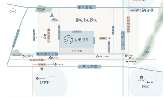 交通出行:项目距离高铁北站仅 6KM,高铁北站一站直达虹桥商务枢纽。周边有地铁 2 号线蠡口站、地铁 4 号线活力岛站,还有春申湖快速路、相城大道、娄江快速路、御窑路等,公交路线众多,交通出行便捷。