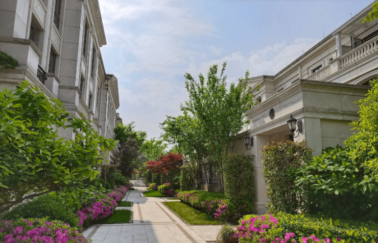 建筑规划:小区共约 118 栋楼,建筑风格涵盖苏式园林中式合院与法式风格。中式宅院有青瓦白墙、飞檐庑廊等元素,法式建筑则借鉴欧洲宫廷美学,外立面以米白色为主。项目为现房,交付标准均为毛坯。