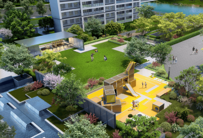 景观设计:打造约 500㎡阳光大草坪、社区会客厅、宅间组团等景观空间,社区景观生态面积超过 10000 平方米356。