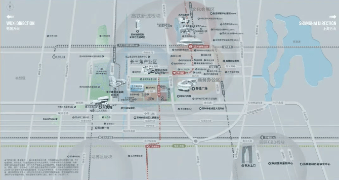 商业配套:楼盘周边 3km 范围内有 14 个商场,包括吾悦广场(苏州高铁店)、圆融购物中心、印象水街都心荟、苏州大悦城等购物中心,商业氛围浓厚,能够满足居民日常购物、餐饮和娱乐等需求1。