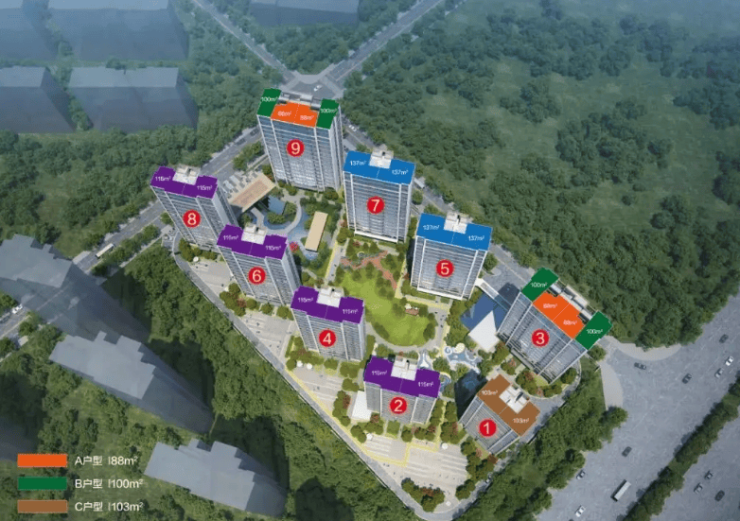 主力产品:建面约 88-137㎡三至四房,毛坯交付。其中: