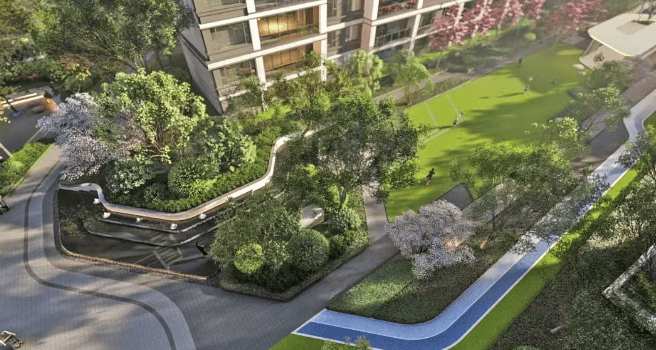 生态休闲:临近 4A 级石湖景区、上方山国家森林公园、越来溪沿河景观带;小区内规划有约 280 米林荫大道、500 米夜光跑道、5 处静谧休闲花园、2 处全龄活动剧场45。