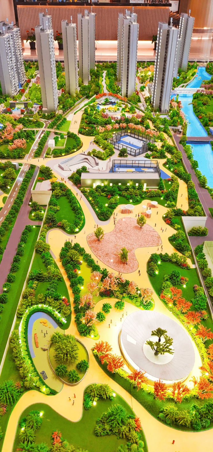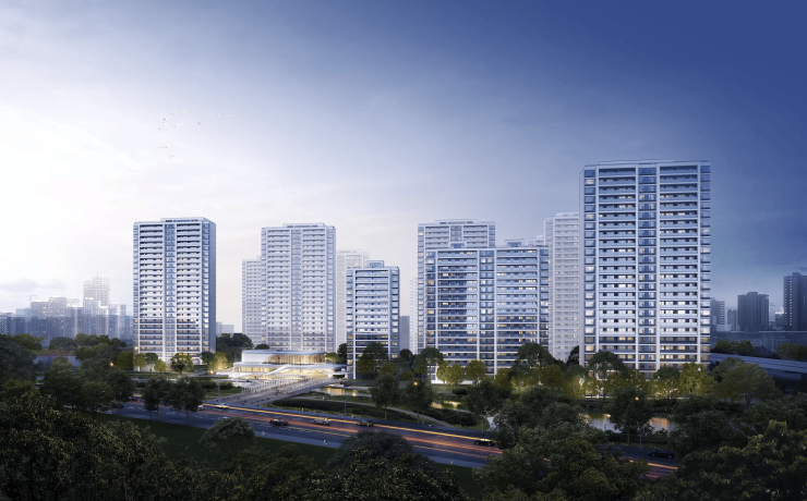 建筑规划:小区规划建设 16 栋 17-26 层的精装高层,采用两梯四户设计。建筑外立面现代简约,整体布局合理,楼间距适中,确保了充足的采光和通风。