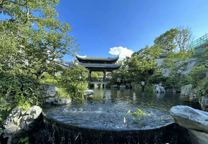 园林设计以中国皇家园林御苑作为景观设计根基,参考苏州拙政园设计蓝本。