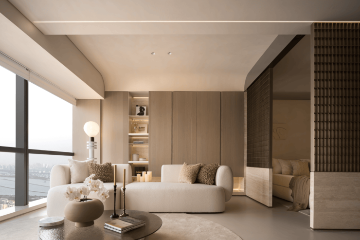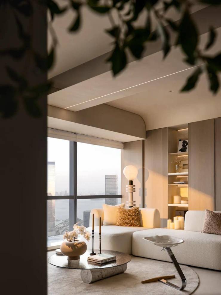 “人、空间、设计”三者一体的状态,才是解读一个场域的最好方法。设计所要做的,是去繁从简,让空间场景包裹情绪。在柔和的色调与灯光中,用光影材质细节递进传达家最具象的感受。