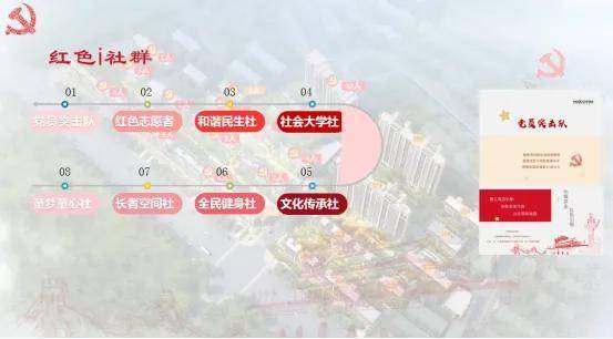 与此同时,红豆承袭“红色党建”基因,创新延伸打造了“红色i社群”,即:在社群运营中,将充分发挥物业基层党组织的作用,构建开放、集约、共享的党群服务社群体系。通过组织活动,传递红色党政思想,化解矛盾,营造和谐社区。并配套形成了“2+3+X”的平台体系,以及标准工作法。