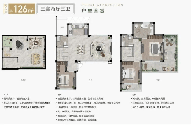户型设计:有建面约 98㎡、126㎡、172㎡三种合院户型可供选择,花园、露台、地下室全赠送,实际使用面积比产权面积多 50%-80%。