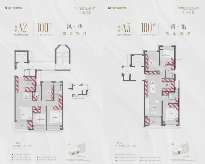 保利·永兴里主力建面约100㎡精装3房2厅2卫,主力总价1200万级,分为双开间和三开间两种设计方案,得益于78-79%的超高得房率,两个户型的室内空间尺度都非常惊艳!