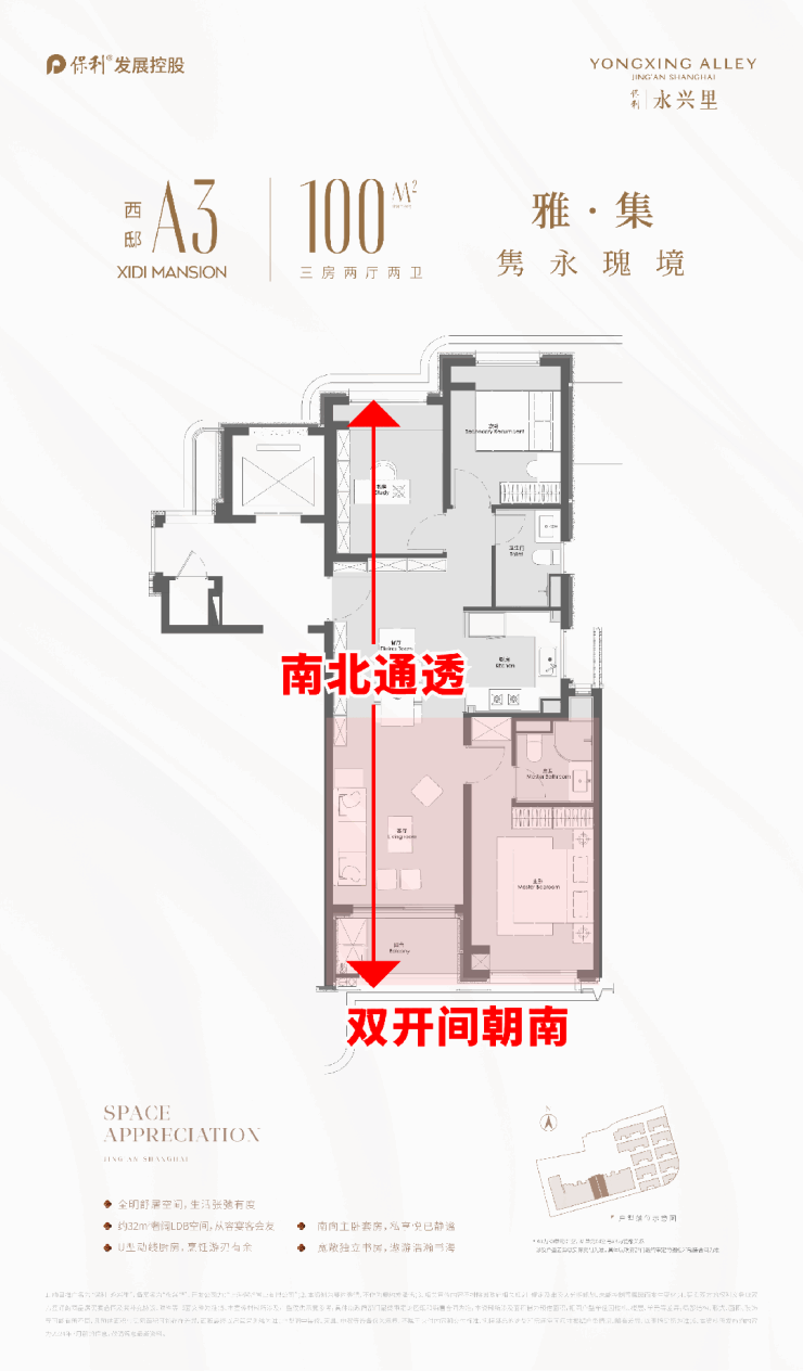 3、高层仅17F,经典100㎡三房产品。