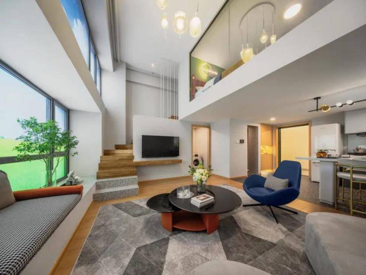 丽格·M5公寓以约4.5米挑高格局,让你买一层享两层。楼上设置书房和卧室,闲暇之时,这里就是你的诗与远方;楼下设置厨房客厅,日常之间,这里就是你的人间烟火。