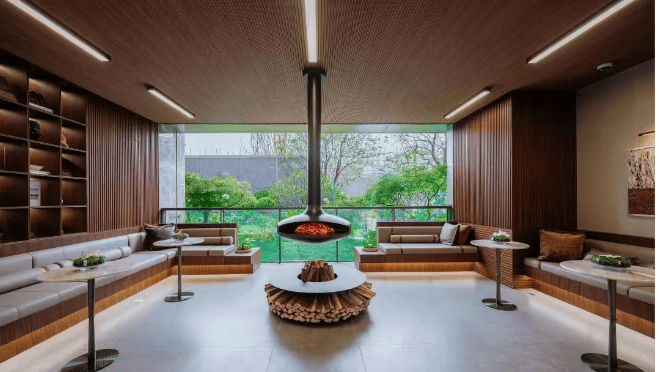自带下沉式会所,含健身房、会客厅、茶室等功能空间。