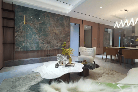 品质住宅:保利第五代标杆作品,采用二层干挂石材、真石漆外立面,精装标准包括中央空调、全屋地暖、新风系统。