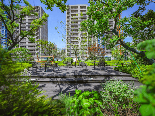 森系园林景观:以新加坡度假森居为灵感,打造“一轴一环六境”园林体系,包含约260米中庭运动环、阳光草坪、花园躺岛、植物学堂、咖啡馆等全龄化场景,满足居民休闲、运动、社交需求。
