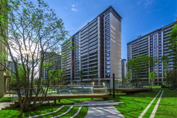 府院规制藏尽东方雅致。社区以“一轴三进”礼序布局,入口叠石水景映照着云影天光,归家步道两侧全冠移植的银杏与红枫,随季节铺展层次。约38%绿化率的中央园林,将云纹元素融入景墙与步道,阳光草坪、林下会客厅嵌入绿意,既是邻里闲谈的雅境,也是圈层社交的私场。