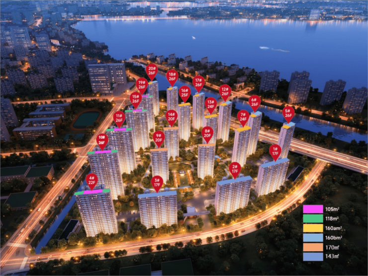 建筑类型:3幢小高(17F)、17幢高层(20~26F)