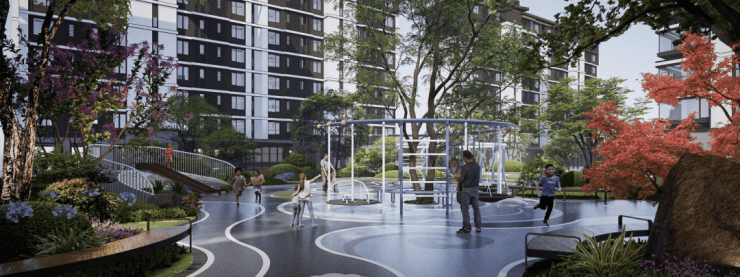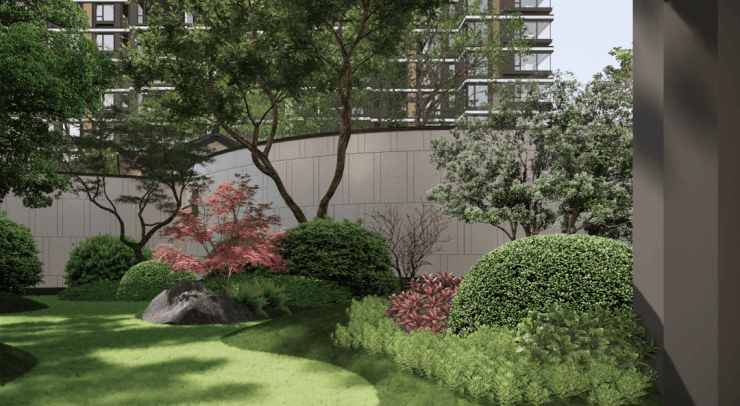 「沐光青林」活动草坪,满足休憩、游戏及户外活动等功能