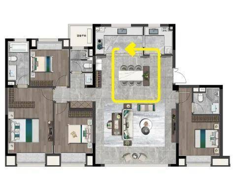 疫情下的生活需要更多的思考,入门后家政洗手池让家庭更安全,双动线的设计让防护更加贴心。从家政到厨房再到客厅形成了洄游动线,为生活增添新的乐趣。
