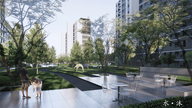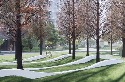项目红线外的街边公园绿地作为项目的第一形象,是客户们每日归家的必经之路,更是第一体验。我们在界外绿地上精心打造城市客厅,打破城市与小区的物理边界,延伸和辐射项目内的绿色公园体验到家门外,将生活与社区还给居民,共同打造无界的绿色公园社区。