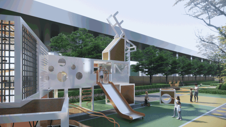 童乐——打破动与静的关系,约170米的乐活运动功能轴。通过小鹿探险乐园、约950米环形慢跑道、青年健身、家长看护等丰富生活情境,针对不同年龄阶段的户外活动需求,划分不同的玩乐空间,让人们在现代紧张繁忙的工作之余,感受自然的慢调气息,丰富日常休闲生活。