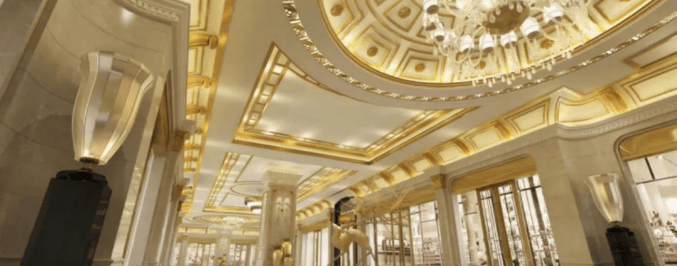 顶级设计:内部空间设计由缔造上海新天地等商业传奇的李少渠先生操刀,以巴黎精致、内敛的现代古典气质为灵感,打造优雅奢华的欧式风格。进口巴西白玫瑰石材外立面、造价 80 万的施华洛世奇水晶穹顶、爵士白大理石南北大堂等,营造秩序而典雅的入户礼仪。