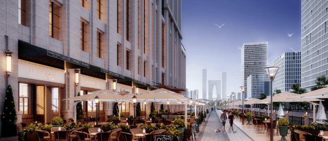 商业配套:30 万㎡苏州中心领衔,龙湖天街、天虹、凤凰、苏悦等高端商业体环绕,还有东方之门、环球 188 等大型商业综合体,自带约 12000㎡室内度假街。