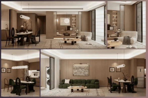 建筑设计:融合现代简约与海派文化独特韵味,外立面采用高品质建筑材料,线条简洁流畅,色彩沉稳大气。
