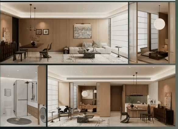智能精装:全屋甄选东芝、博世、三星等一线品牌智能家电,采用德国柏丽橱柜、杜拉维特智能卫浴、大金中央空调、新风地暖三件套。