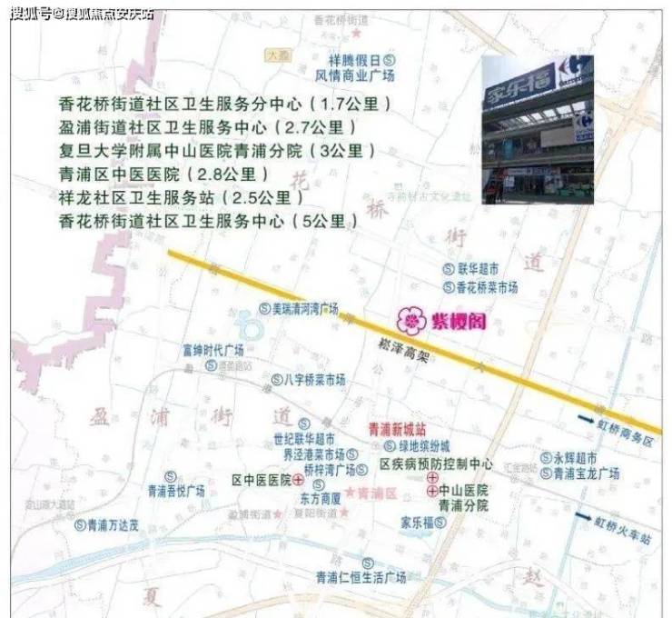 【紫樱阁】位于青浦外青松公路和崧泽大道交叉口,这是青浦新城区的核心地段。
