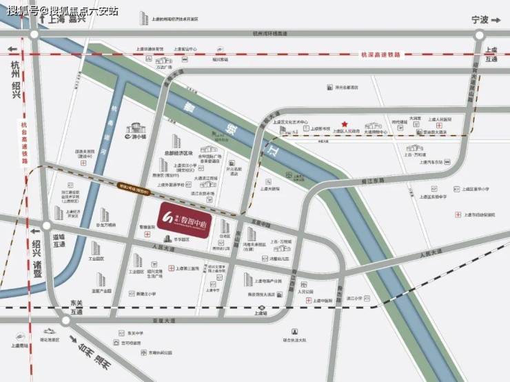 项目择址上虞城西核心区,1KM范围内覆盖教育、商业、生态全维配套: