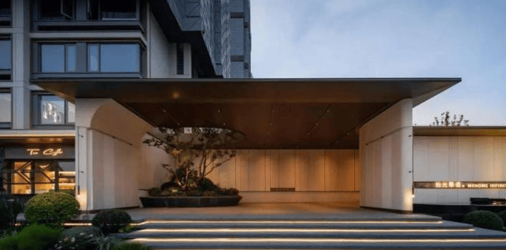建筑设计:作为板块内首个采用公建化外立面的小区,辨识度拉满。建筑以白、金、蓝灰为主调,南立面搭配大面玻璃,基部采用贝金米黄大理石,还从宋代建筑中提炼重檐与斗拱元素融入细节。小区西侧紧邻南门江支流沙里吴河,多数住户可享受一线瞰河视野。