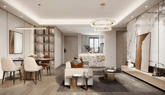 洋房:建面约75㎡,两室两厅一卫,精装交付。