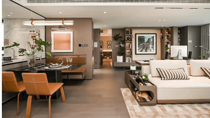 细节设计:部分户型配有独立玄关,提升房型结构及隐私性能,还有全飘窗卧室、分离式玄关储藏空间等。130㎡户型引入 “创新 S 墙”,使双开门冰箱入柜,全玻璃视觉厨房可 270° 开合边界,客卧间隔墙和主次卧隔墙可升级,实现空间自由可变。