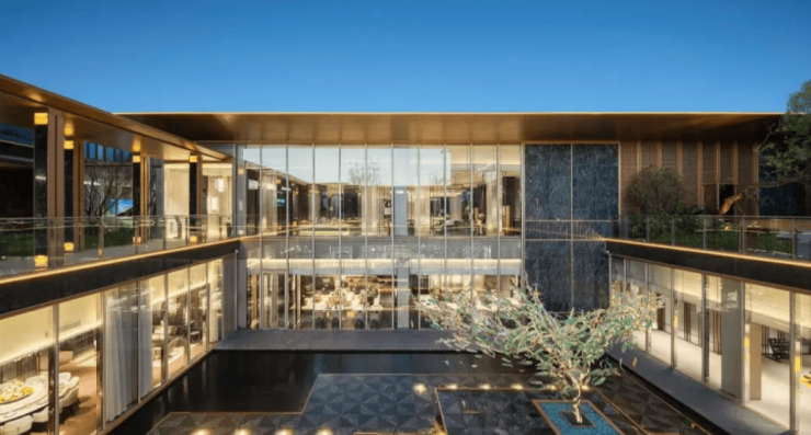 小区实现纯人车分流,每栋楼均有 4.8 米风雨连廊连接。还设有会所,规划了运动、会客两大配套空间,具备健身运动中心、私宴等功能。
