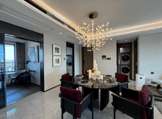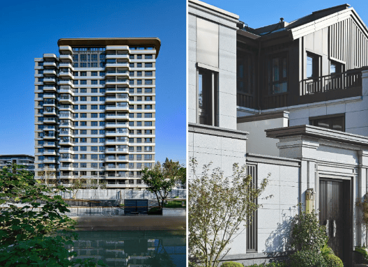 多元产品线:涵盖建面约83-184㎡高层、99-197㎡洋房及197㎡滨水联排,满足不同家庭结构和居住需求,尤其联排别墅在中环沿线稀缺,填补了低密产品空白。