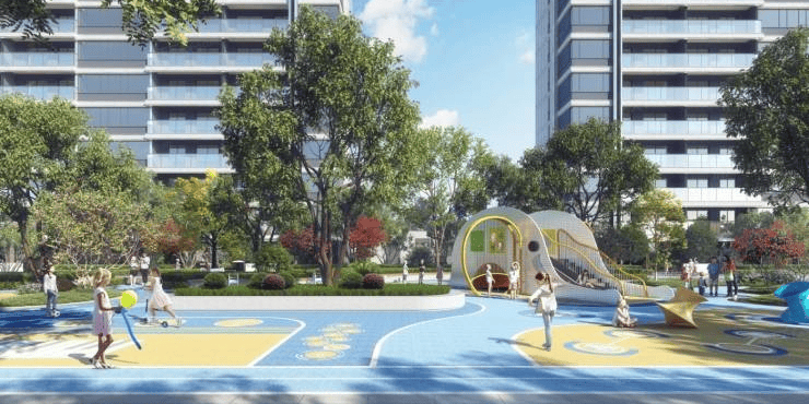 社区内部主题儿童乐园+邻里交流空间,以多功能串联式布局,营造复合交融的多元生活空间。