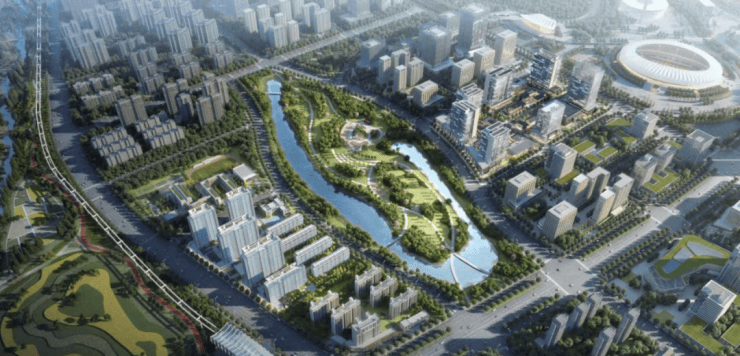 项目自西向东将豹子溪公园、荷塘公园、奥林匹克体育公园,形成一塘两园的公园城市格局,构建一个面向未来的活力新城域。