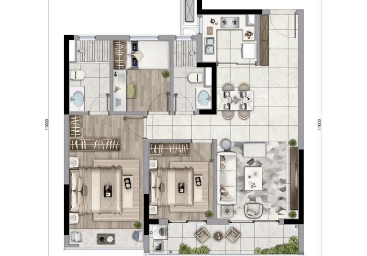 户型:107㎡(3室2厅2卫)