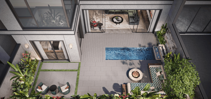 同时,约2.6米的高墙围合布局使建筑与庭院营造高门大户的威仪感,有效阻隔邻里视线,隔绝外界窥探,整个空间布局与独栋更接近,舒适性更强。当亲朋好友聚会时,家庭成员都能够尽情享受生活,不受邻里扰视。