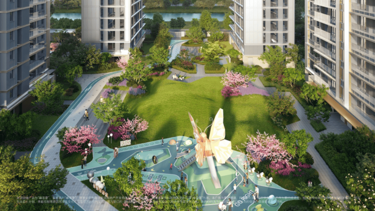 三进式园林,连接下沉庭院的架空层,各式植被打造出的颇具趣味的景观小品,生活在这样的环境中,怎能不让人对未来美好的生活又多一份憧憬。
