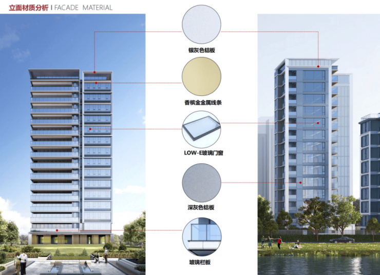 紫城·峰荟里立面以斜切角度设计,让外立面的现代气质更加鲜明,运用大量铝板,实现更轻薄的视觉感受,凸显自身的大气与稳重,立面采用金属铝板搭配玻璃栏板,更大程度的保留采光度,营造更广阔的观景视野,使整个立面通透明亮,多层次的设计更展现了外观流动的诗意。