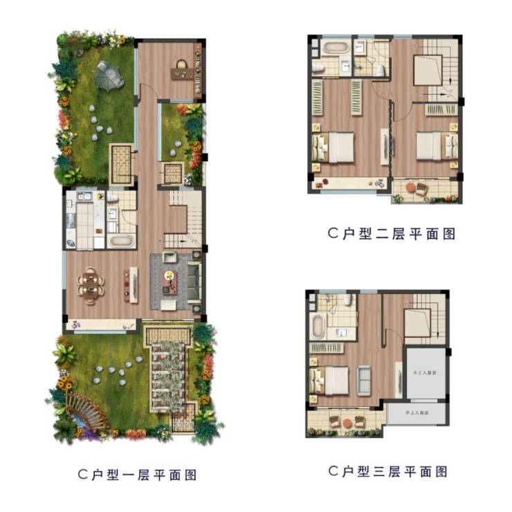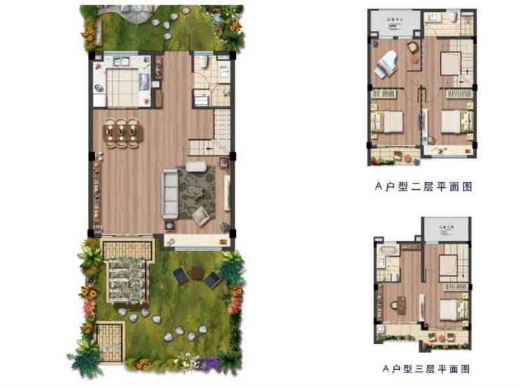 整个小区采用立体分层式空间设计,地上三层满足多代人生活需求,