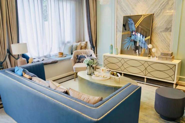 客厅开间可到达6.6米,大开间让整个客厅更加阔绰,采光更好。客厅层高3.3米,客厅配大飘窗,庭院景观尽收眼底,整个客厅的视线、阳光都非常好。